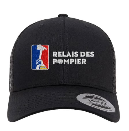 Casquette officielle du Relais des Pompiers, offerte en plusieurs couleurs et avec différentes options de logo brodé.